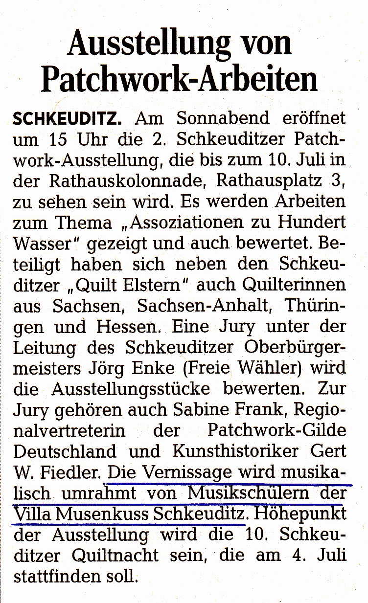 LVZ vom 24.06.2014 – Seite 20 – Ausstellung von Patchwork-Arbeiten