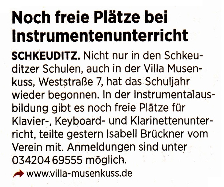 LVZ vom 05.09.2014 – Seite 17 – Noch freie Plätze bei Instrumentenunterricht