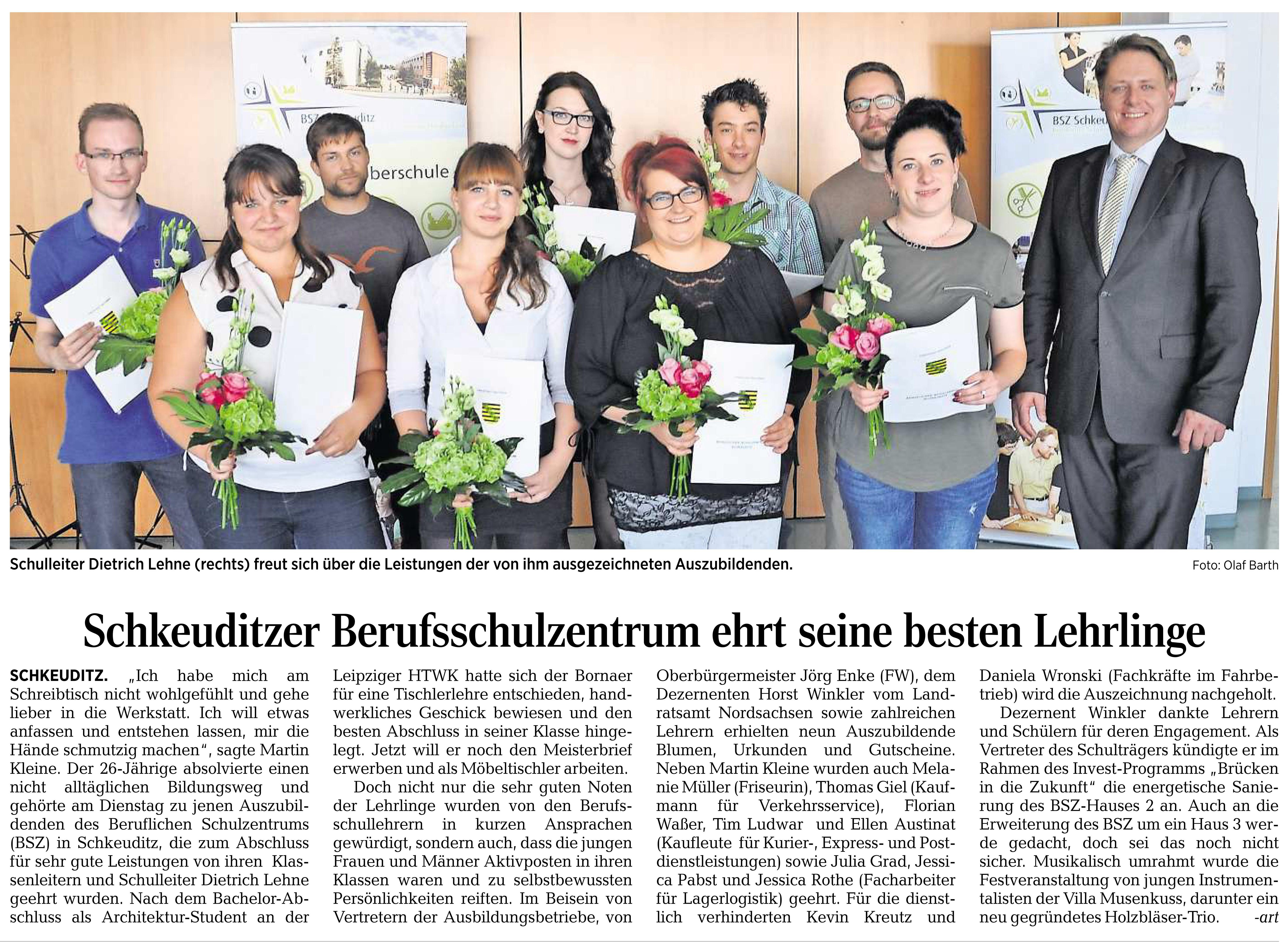 LVZ vom 09.06.2016 – Seite 17 – Schkeuditzer Berufsschulzentrum ehrt seine besten Lehrlinge