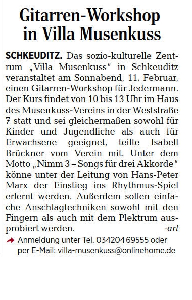LVZ vom 30.01.2017 – Seite 17 – Gitarren-Workshop in Villa Musenkuss