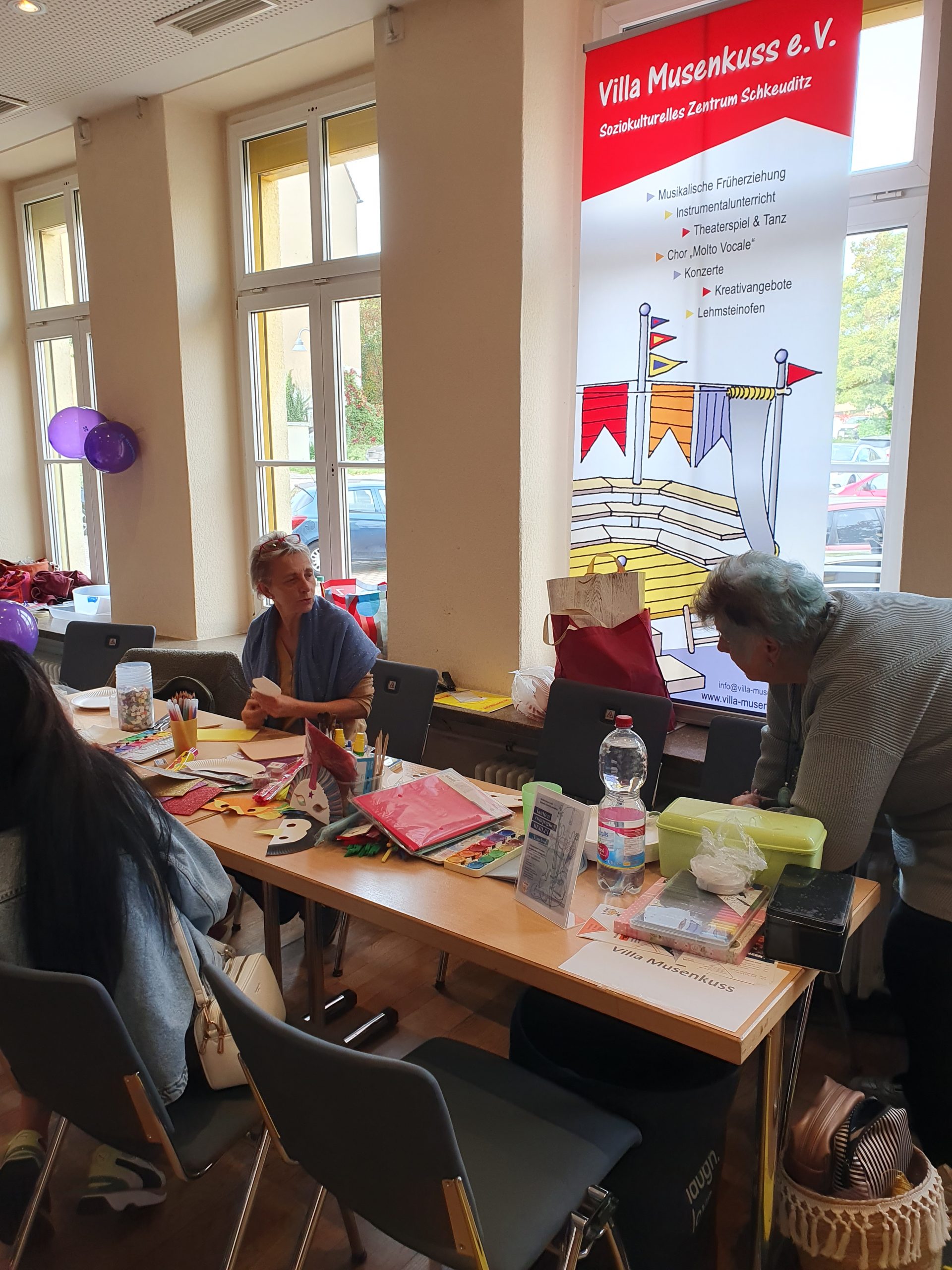 Am 19. Oktober war der Villa Musenkuss e. V. beim Familienaktionstag des Kulturhaus Sonne in Schkeuditz. Neben vielen anderen Kreativ- und Bastelangeboten und leckerem Kuchen gab es bei uns die Möglichkeit, bunte und wilde Masken zu basteln und gleich in verschiedene Rollen zu schlüpfen.
